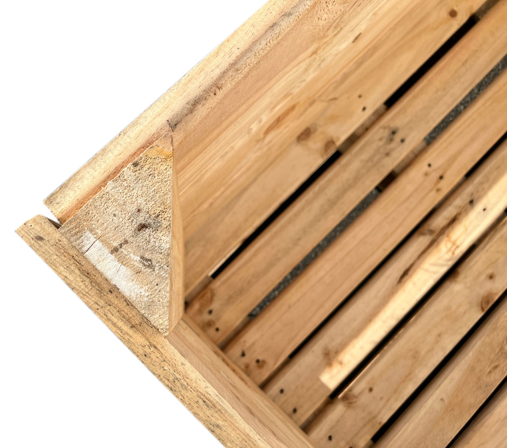 Wir bieten Ihnen alte dunkle Großkisten an, aus denen Sie sich zum Beispiel einen schönen Strandkorb, Stehtisch oder Ähnliches bauen können.
