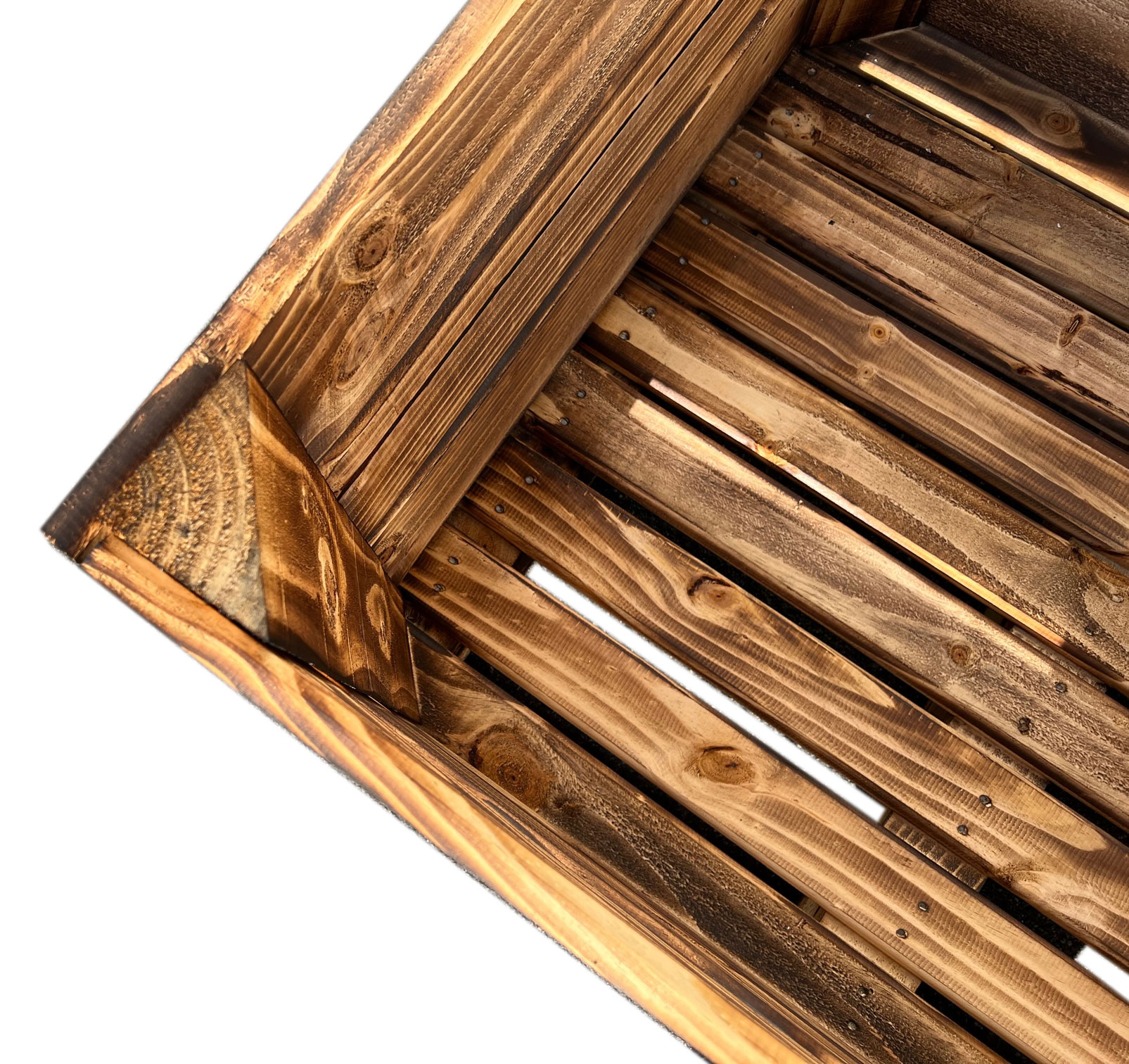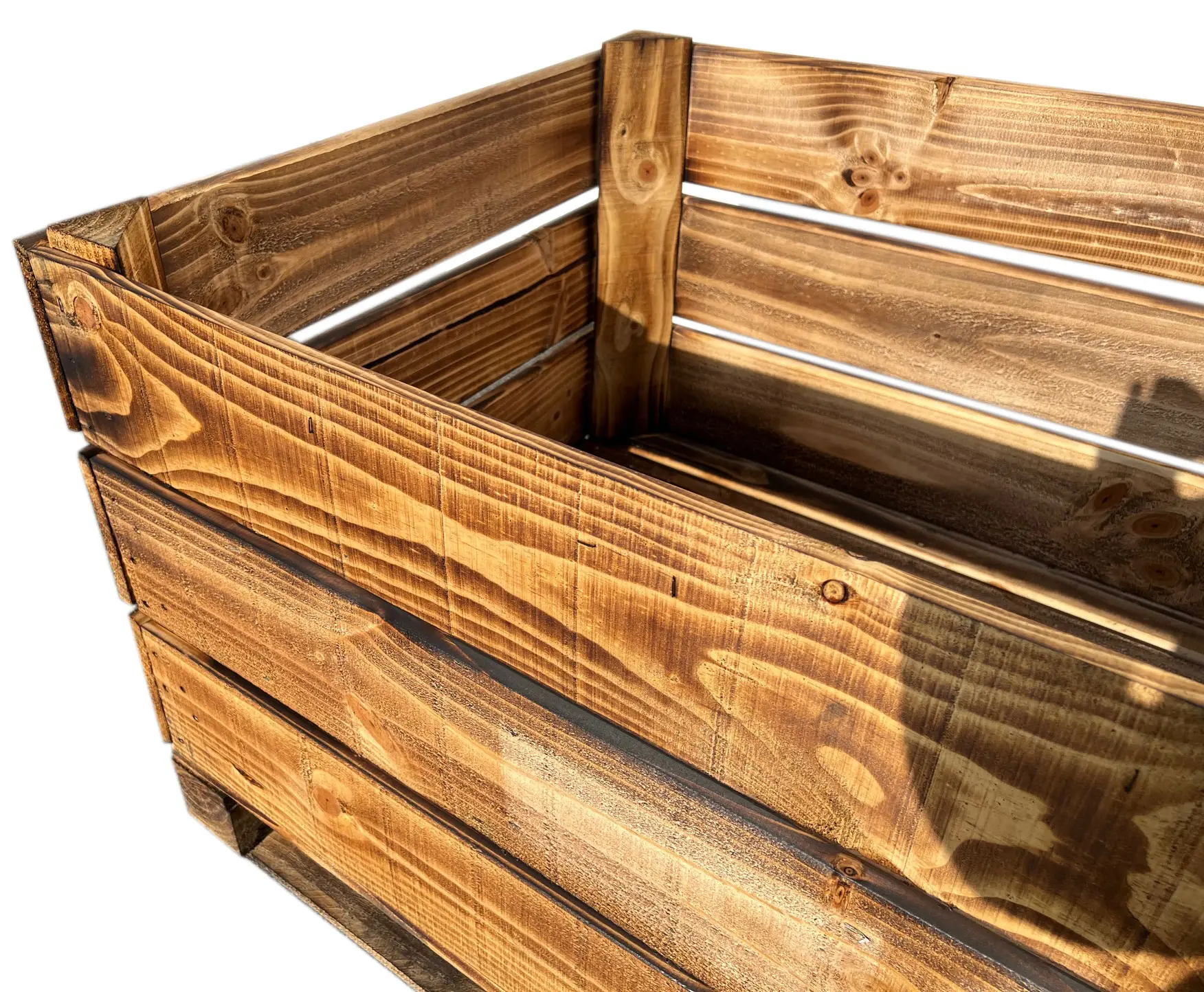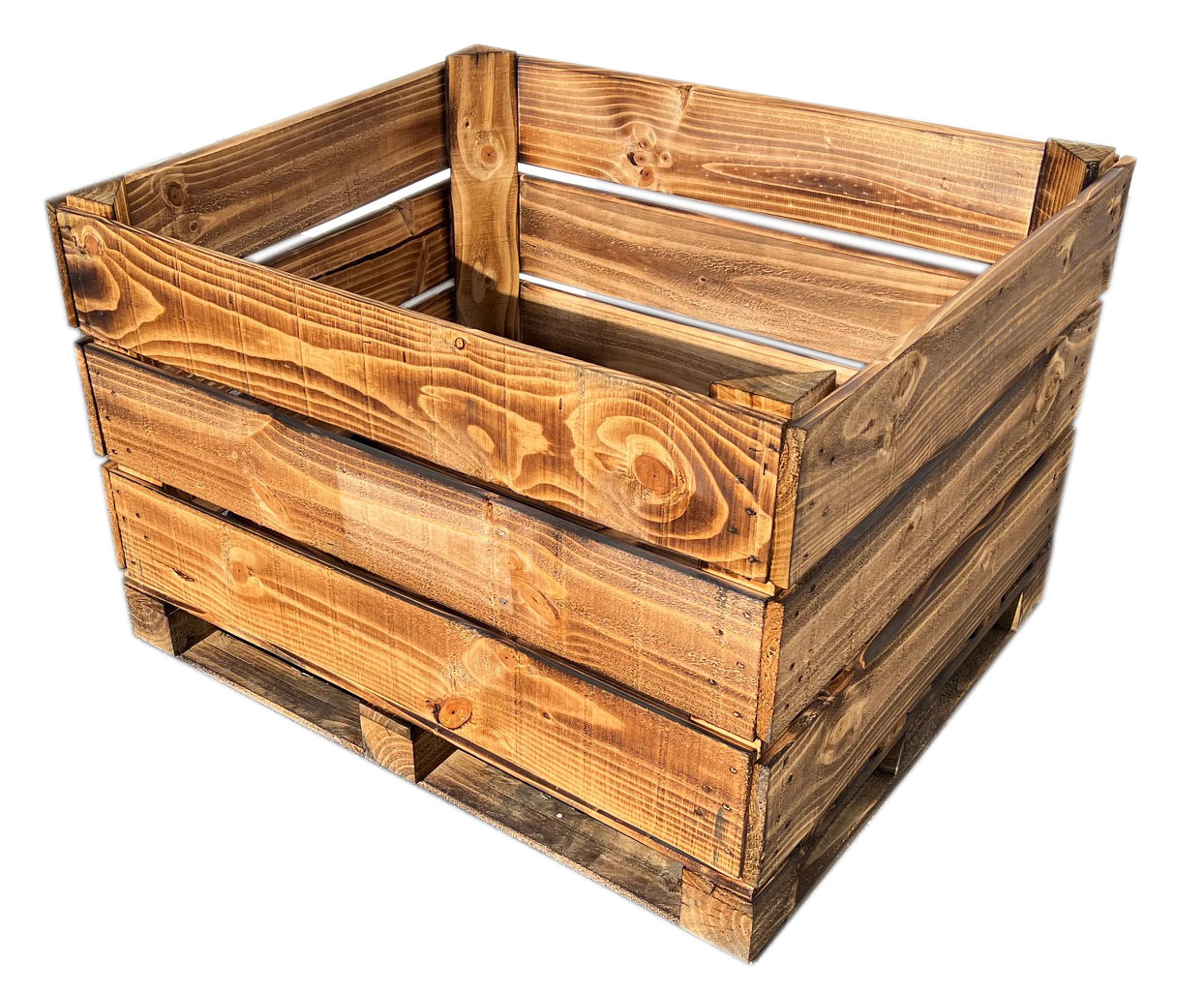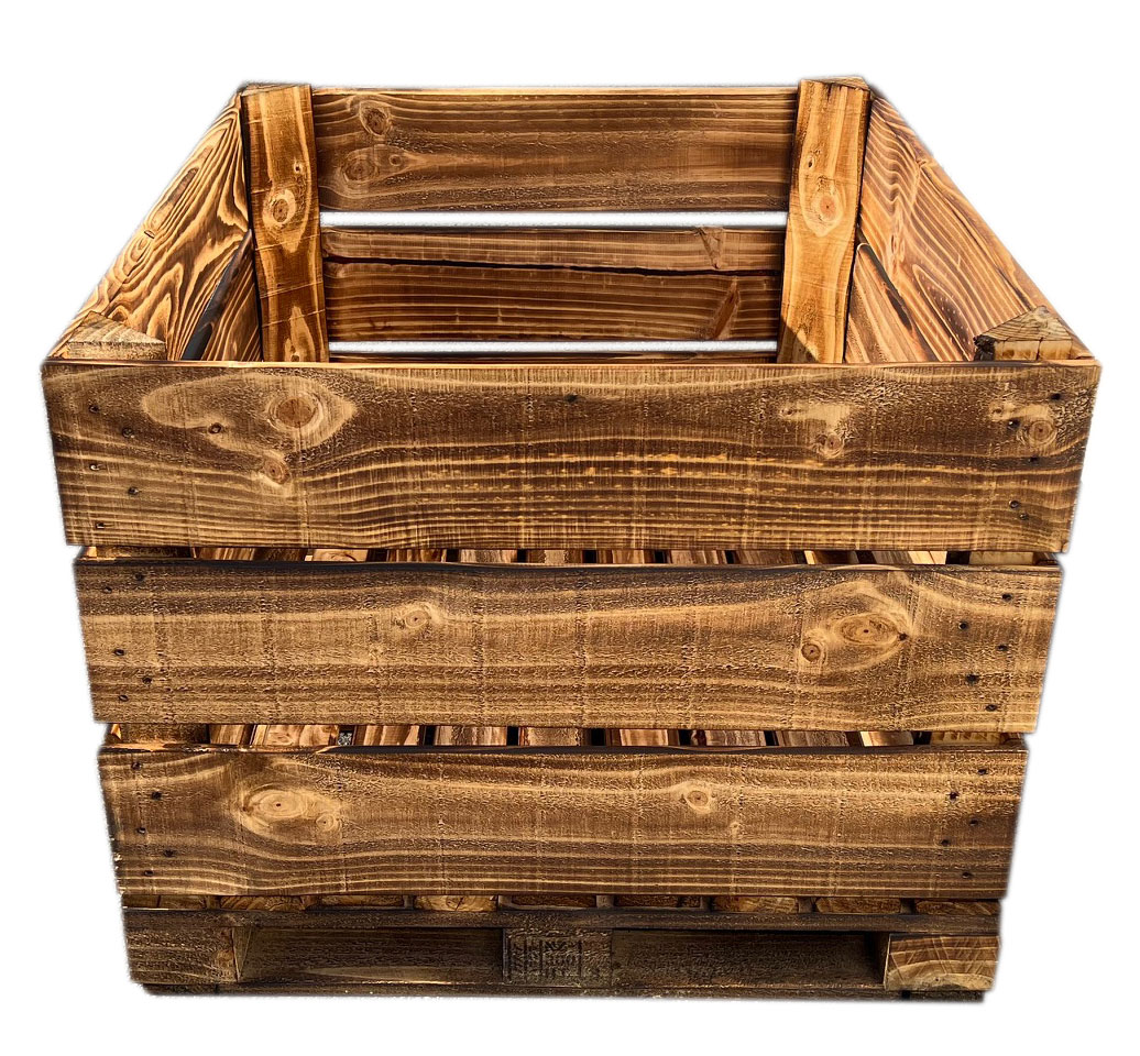 Wir bieten Ihnen alte dunkle Großkisten an, aus denen Sie sich zum Beispiel einen schönen Strandkorb, Stehtisch oder Ähnliches bauen können.