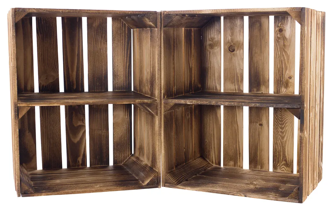 Gemischtes Set aus geflammten Holzkisten 50x40x30cm