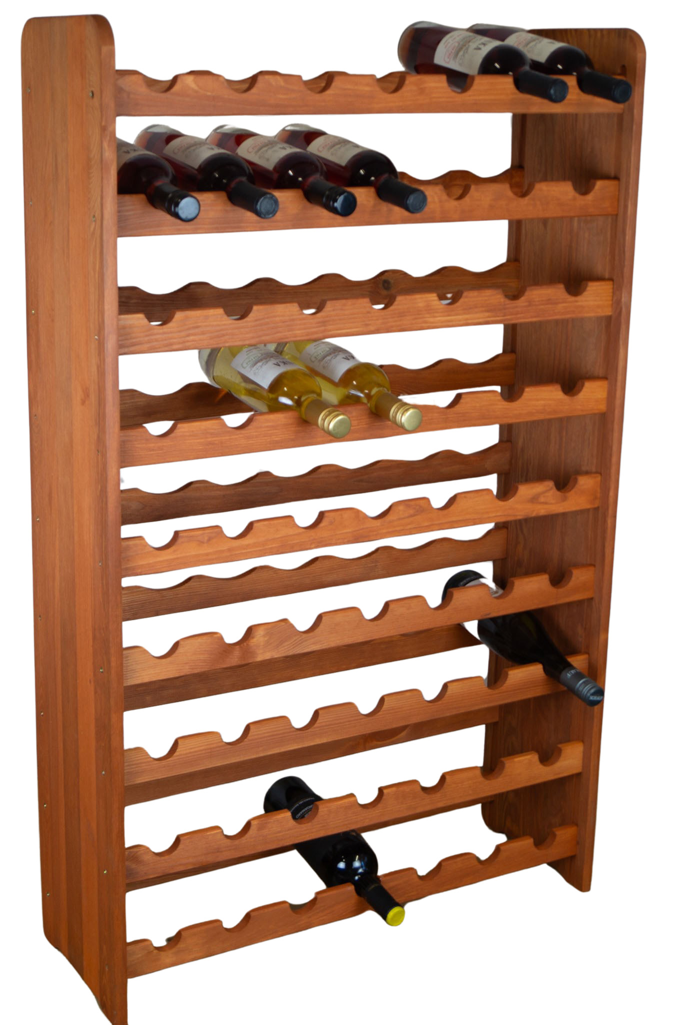 - Das Weinregal bietet Platz für 63 Flaschen