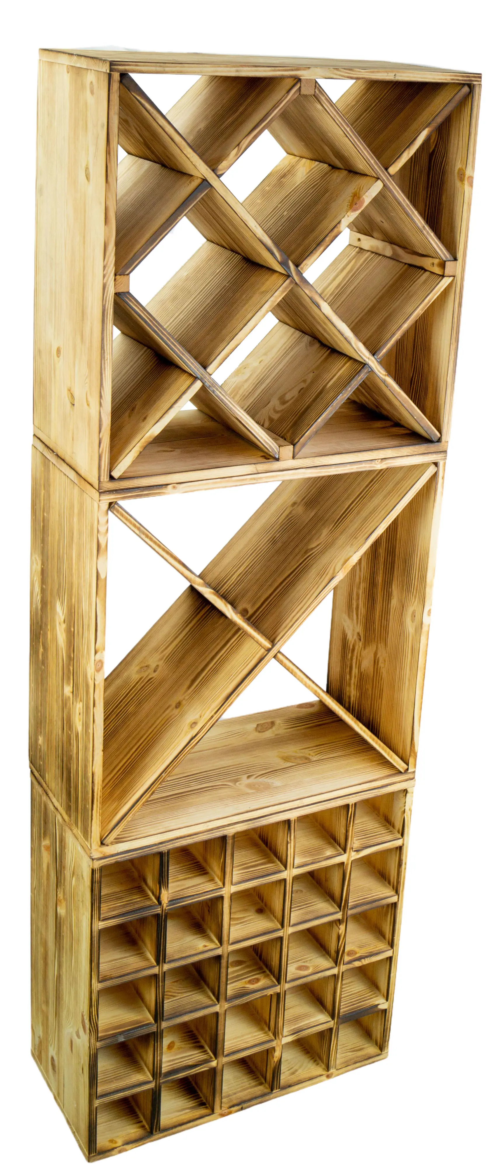 Unsere 3er Serie grosses Weinregal bestehend aus unserem "25er" "X" & Raute, haben alle die Abmessungen 52 x 52 x 25cm L x H x T. Diese Weinregale lassen dich wunderbar miteinander kombinieren, bieten dann auch Platz für alle Flaschengrößen. Das X und das Rautenregal müssen vorab montiert werden, was aber sehr leicht mit einer kleinen Montageanleitung umzusetzen ist. Das 25er Weinregal kommt hingegen fertig montiert zu Ihnen nach Hause.