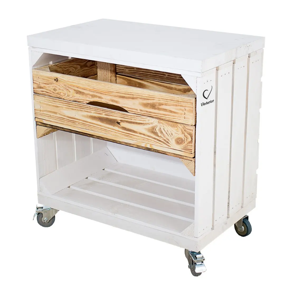 Stellen Sie sich eine individuelle Kiste zusammen und statten Sie sie mit Mittelbrettern, Bohlenbrettern oder Rollen aus. So erhalten Sie Ihr ganz eigenes Unikat mit besonderem Charme, das auf Ihre Bedürfnisse abgestimmt ist.
