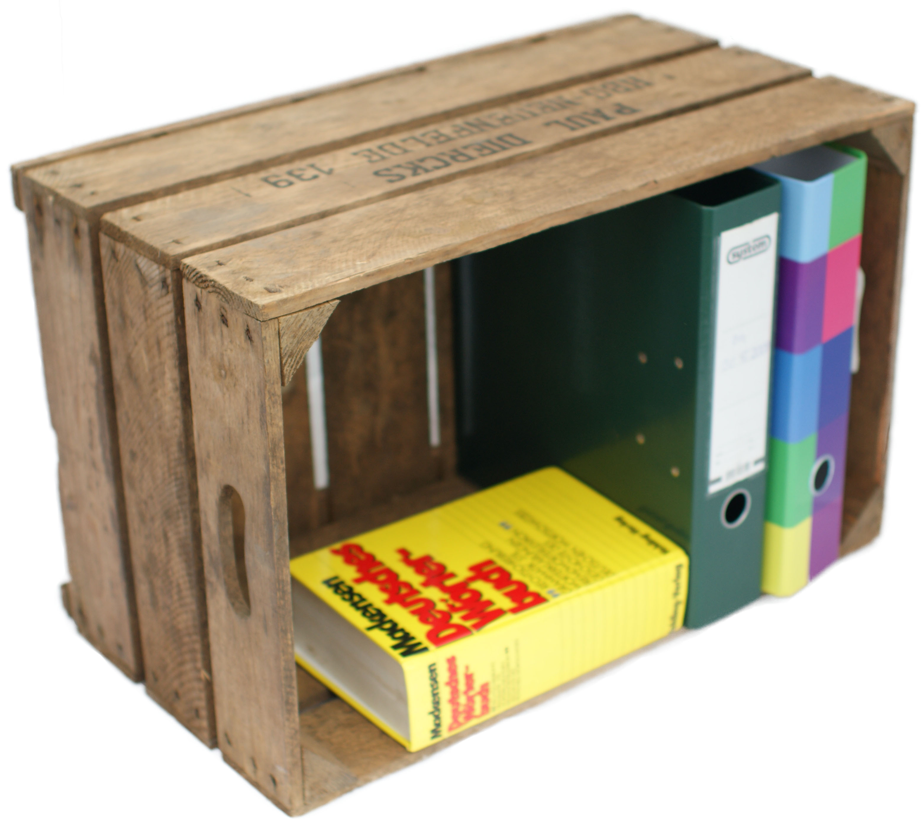 Die Aufschriften können auf den wunderschönen Obstkisten varieren. (Kopfseite oder Längsseite)